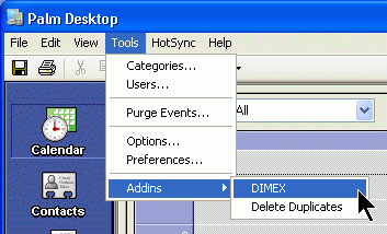 DIMEX is a Palm Desktop Add-In that allows you to import and export your Palm calendar /datebook appointments in a variety of file formats.