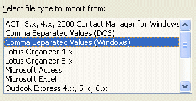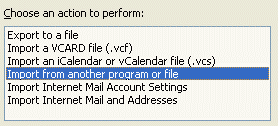 In the Import and Export wizard, use the default action type Import from another program or file, then choose Comma Separated Values (Windows). Select the file you want to import, and decide what to do with duplicates.