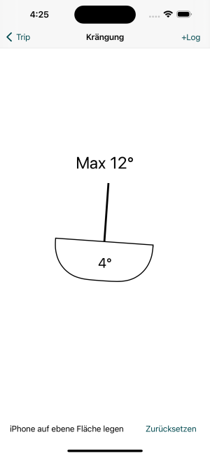 Krängung zeigt die aktuelle und maximale Krängung an und überträgt auf Wunsch die maximale Krängung ins Log.