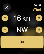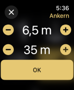Die Watch App enthält spezielle Eingabe-Screens für Ankern, Wind und Wellen. Nutzen Sie die +/- Buttons oder die digitale Krone, um die Werte zu ändern.